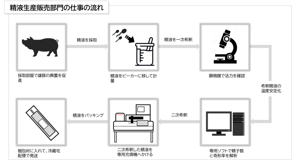 ・採取された精液は、品質検査し、パッキングして販売されます。